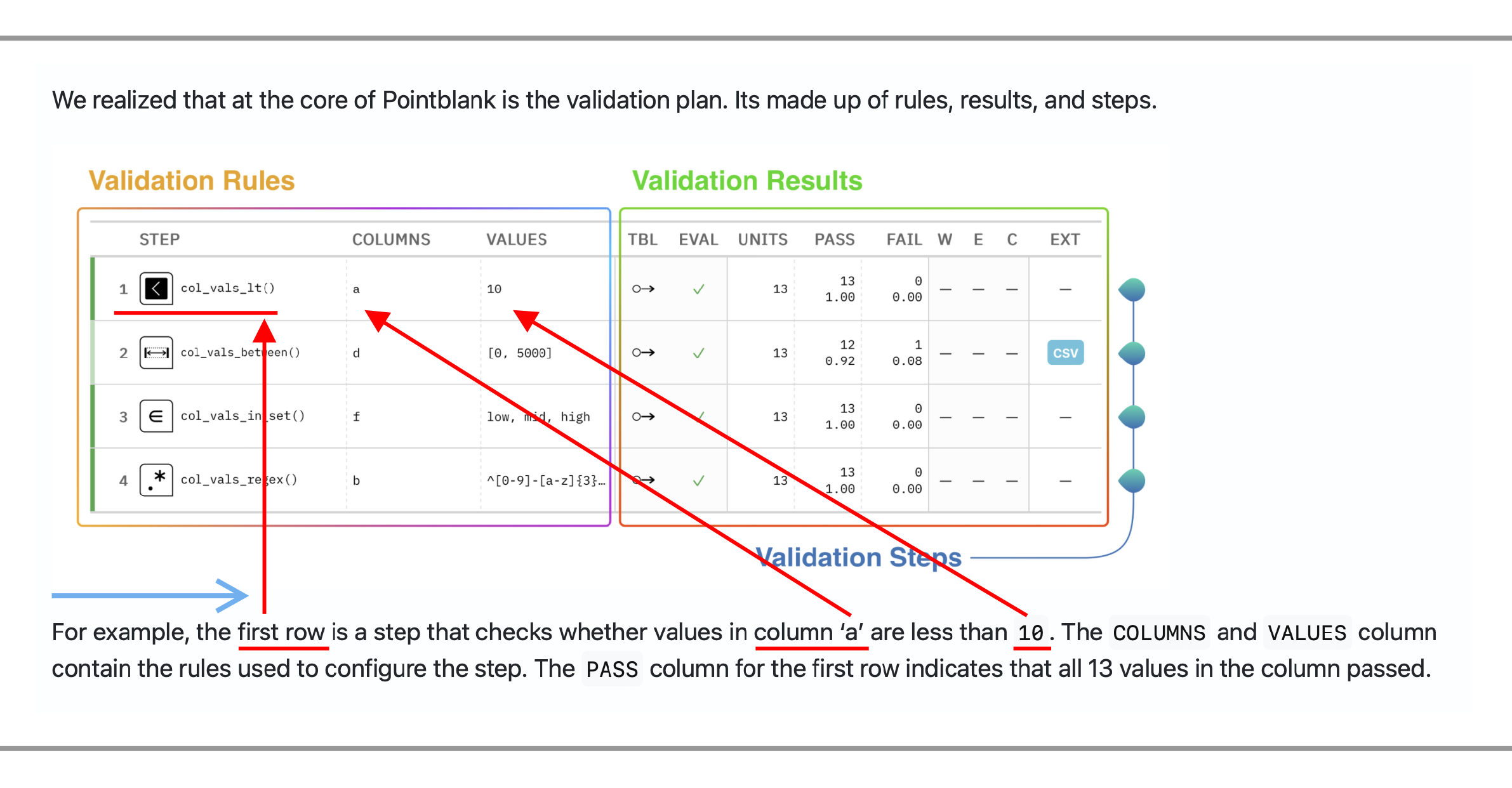 We realized that at the core of Pointblank is the validation plan. Its made up of rules, results, and steps.