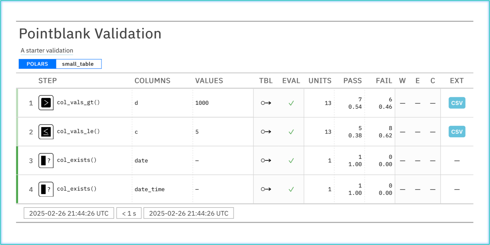A Parquet dataset can be used for data validation, thanks to Ibis.